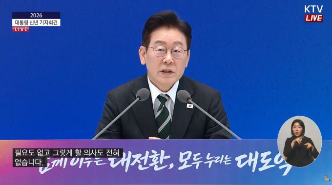이재명 대통령이 21일 오전 청와대 영빈관에서 신년 기자회견을 하고 있다. [사진=KTV]