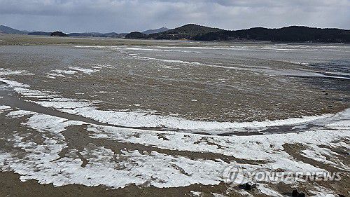 21일 충남 서산시에 따르면 지곡면 중왕리 앞바다가 이번 주 들어 얼기 시작했다.
