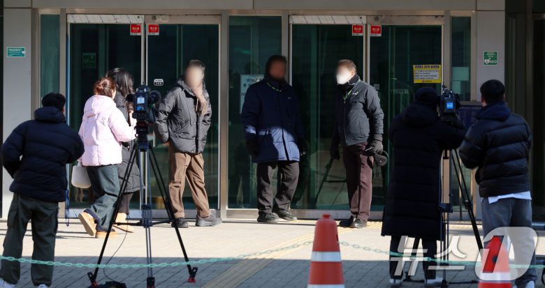 (서울=뉴스1) 김명섭 기자 = 21일 북한의 한국 무인기 침투 주장에 대한 진상을 규명하는 '군경합동조사 TF'가 민간인 피의자 3명에 대한 주거지 및 사무실 등에 대해 항공안전법 위반 혐의로 압수수색영장을 집행하고 있다. 사진은 이날 사무실로 알려진 서울시내 한 대학교 앞 취재진 모습. 2026.1.21/뉴스1