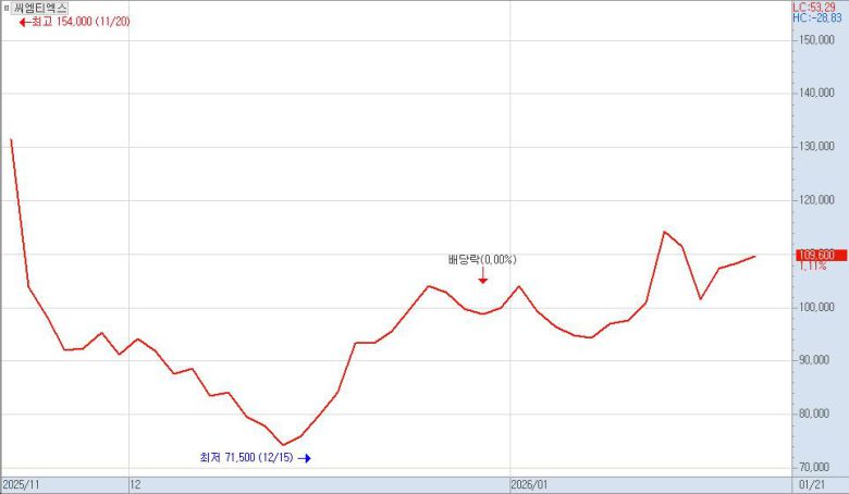 씨엠티엑스 주가 차트. |