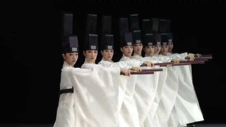 '일무'는 유네스코 인류무형문화유산인 '종묘제례악'의 의식무를 현대적 감각으로 재해석한 작품입니다.