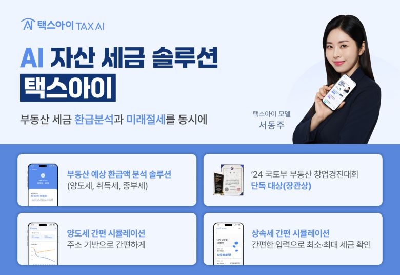 국토교통부 창업경진대회에서 단독 대상을 수상한 930만 케이스 AI 알고리즘을 통해 세법 유형과 규정을 실시간으로 정밀 분석할 수 있다. 양도소득세 및 상속세, 취득세, 보유세 등 10년 동안의 세금을 토대로 그래프 형태로 예측된 결과와 과세 결과 리포트를 제공하고 있다. 또한 국내 유일 ‘부동산 예상환급액 실시간 분석 서비스’를 통해 사용자의 과거 신고 오류나 특례 적용 누락을 포착해 최적 과세 유형을 AI 알고리즘으로 판단하고 있다. 실제 1인 최대 환급 분석액은 1억5681만 원을 기록하며 독보적인 기술력을 입증했으며 한국부동산원, 우리은행, 하나카드와 제휴해 공공기관과 금융사 앱 내에서 자산 및 부동산 서비스를 제공하고 있다.