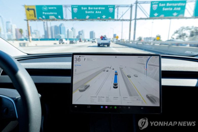 FSD 소프트웨어로 주행 중인 테슬라 모델3. 연합뉴스