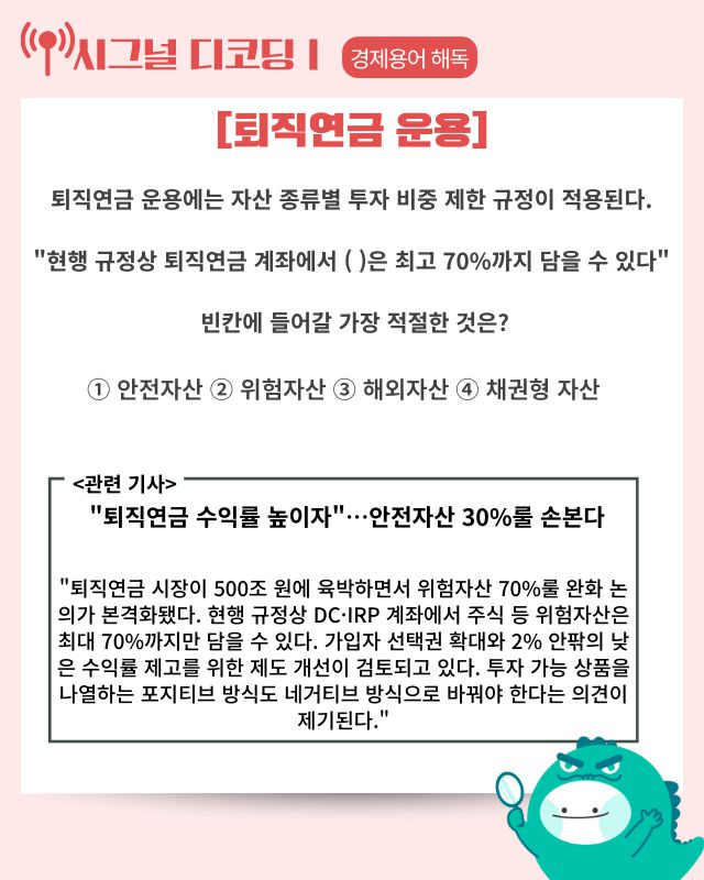▶ 기사 바로가기: “퇴직연금 수익률 높이자”···안전자산 30%룰 손본다