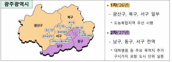 실증은 단계적으로 확대된다. 올해는 광산구·북구·서구 일부 등 교통량이 적고 도로 인프라가 양호한 신시가지·외곽 지역에서 시작한다. 내년에는 남구·동구·서구 전역으로 넓혀 대학병원 등 주요 목적지와 구시가지까지 포함한다.