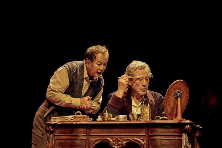 장유정 연출의 네번째 시즌(4연)으로 서울 장충동 국립극장 달오름극장에서 공연 중인 연극 ‘더 드레서’가 이전 시즌과 가장 크게 달라진 건 캐스팅이다. 최근 무대에서의 활약이 눈부신 배우 박근형과 정동환이 노배우인 선생님을 맡았고 전 시즌에서 선생님을 연기했던 송승환이 후배 오만석과 함께 노먼을 맡았다. 선생님은 연기자 연배가 70~80대로 올라가면서 말하자면 더 선생님에 더 가까워졌고, 요 몇년 새 시력이 급속도로 나빠진 송승환의 자리 이동은 신선한 파격이다.