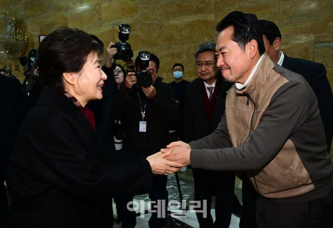 [이데일리 노진환 기자] 박근혜 전 대통령이 22일 서울 여의도 국회 로텐더홀에서 통일교·공천헌금 ‘쌍특검’ 수용을 요구하며 8일째 단식 중인 장동혁 국민의힘 대표를 찾아 대화하고 있다.