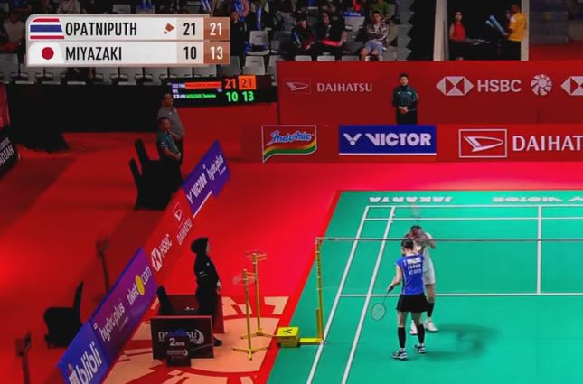 '배드민턴 아이돌'과의 대결에서 1게임을 21-10으로 쉽게 따낸 피차몬은 2게임에서도 꾸준히 미야자키와 점수 차를 벌렸다.