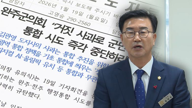 <유의식 / 완주군의회 의장(1월 19일)> "저희 완주군의회와 완주군민의 뜻은 단호하게 통합을 거부한 것입니다. 실례로 (통합)시작은 김관용 도지사, 우범기 시장이 정치적 공약 1호로 시작된 것이고…"