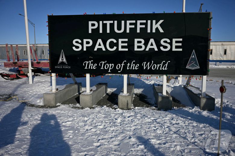 그린란드에 설치된 미국의 피투피크 우주군 기지 표지판이 보이고 있다. 2025.3.28./뉴스1 ⓒ 로이터=뉴스1 ⓒ News1 이창규 기자 |