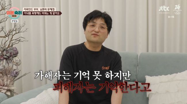 남편은 제작진과의 인터뷰에서 “위협하죠. 위협하고 그 때문에 아내가 힘들었다. 나도 힘들지만”라고 당당하게 말했다. 아내는 “자기 감정이 격해졌을 때 때린 적이 있다. 그런데 아무리 제가 잘못을 했다고 해도 사람을 때리면 안되지 않나. 그거는 고쳤으면 좋겠다”라고 토로했다.