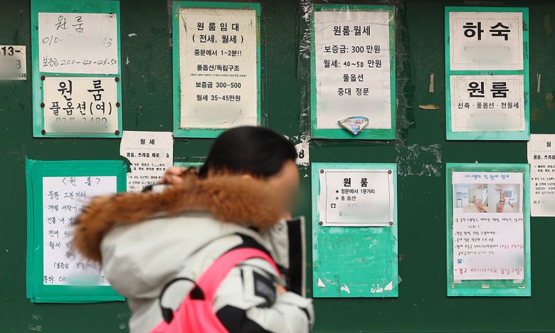 서울 시내의 한 대학가 주변에 붙은 원룸, 월세 안내 모습. 연합뉴스