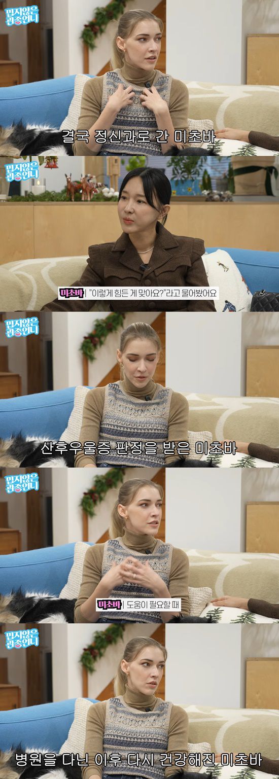 반면 미초바는 출산 이후 쉽지 않은 고비들이 있었다고 털어놨다. 이지혜는 "아기 낳고 육아하고 집에만 있으면 산후우울증 같은 느낌도 온다"며 "혼자 있다는 느낌이 컸을 것 같다"고 독일인인 미초바에게 어려움이 없었는지 물었다.