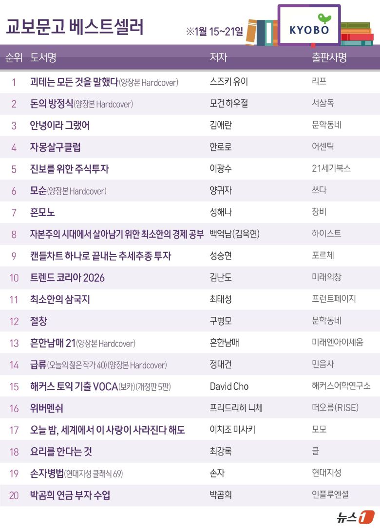 교보문고 최신 주간(1월 15~21일) 종합 베스트셀러
