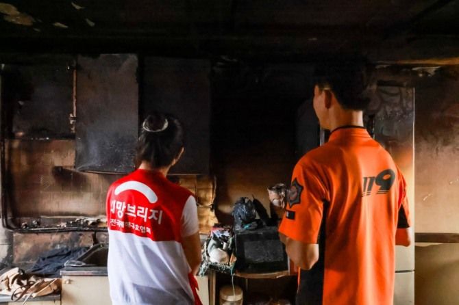 개인 후원자들의 성금으로 운영되는 ‘화재피해가정 지원사업’은 중위소득 120% 이하 가정을 대상으로 한다. 피해 정도에 따라 최대 200만 원의 구호금과 소화기 등 화재 대응 물품이 담긴 ‘일상안전키트’를 186세대에 전달했다.