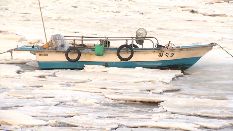 해안가에 정박해 있는 소형 어선들도 얼음에 꼼짝없이 갇혀 발이 묶였습니다.