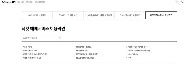 23일 업계에 따르면 SSG닷컴은 이날 자사 홈페이지 공지사항에 티켓 예매서비스 이용약관을 게시했다. 약관에는 예매, 취소, 환불, 수수료 등 서비스 이용 전반의 기준이 담겼다.