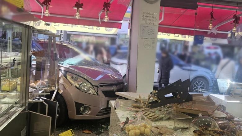 보행자 한 명이 가벼운 상처를 입었고 제과점 유리창과 내부 시설물 등이 부서졌습니다.