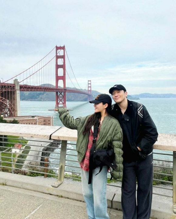 공개된 사진에는 미국 샌프란시스코 골든 게이트 브리지를 배경으로 인증샷을 남기는 손석구, 최희서의 모습이 담겼다. 영화의 한 장면같은 두 사람의 모습이 눈길을 끈다.
