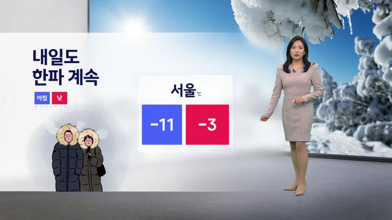 서울 아침기온 영하 11도,낮기온은 영하 3도로 종일 영하권이고요.
