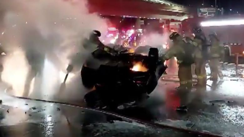 오늘(25일) 새벽 2시 20분쯤 서울 양화동 양화교 근처 도로를 달리던 승용차가 인도 연석을 들이받은 뒤 뒤집혔고, 이후 차에 불이 났습니다.