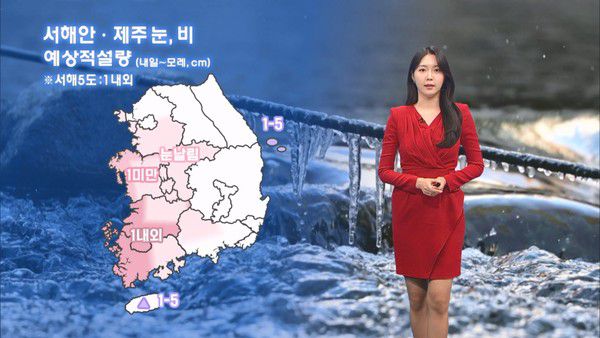 월요일인 내일 전국 대체로 흐리겠고, 밤부터 충남서해안과 제주도에 눈비가 내리겠는데요. 모레 아침까지 적설량은 서해안에 1cm 미만, 제주산지에 1~5cm가 예상됩니다.