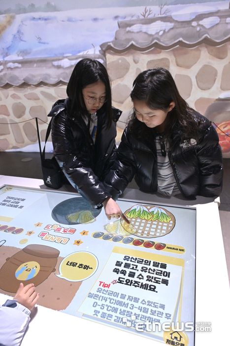 겨울방학과 추운 날씨에 과학관 등 실내 체험학습관의 인기가 높다. 주말 경기도 과천시 국립과천과학관을 찾은 학생들이 ICT 도구를 활용해 김치 담그는 방법을 체험하고 있다.