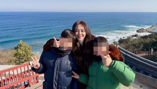 공개된 사진에서 강성연은 겨울 바다를 배경으로 두 아들과 포즈를 취하는 모습이다.