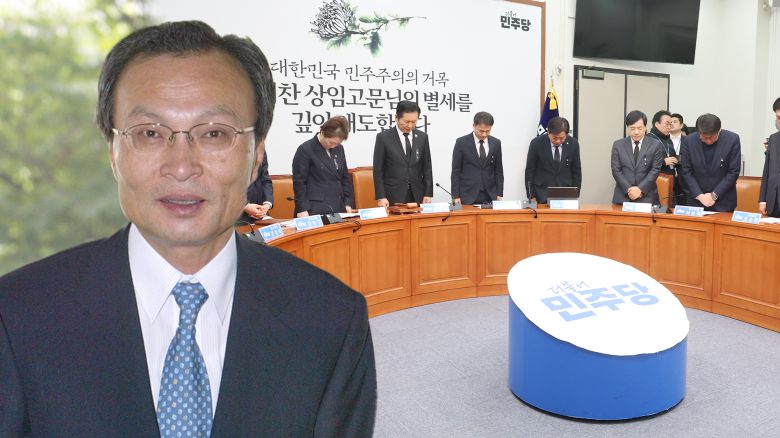 민주당은 오전 최고위 회의장 뒷 벽면에 "대한민국 민주주의의 거목, 이해찬 상임고문님의 별세를 깊이 애도한다"고 썼습니다.