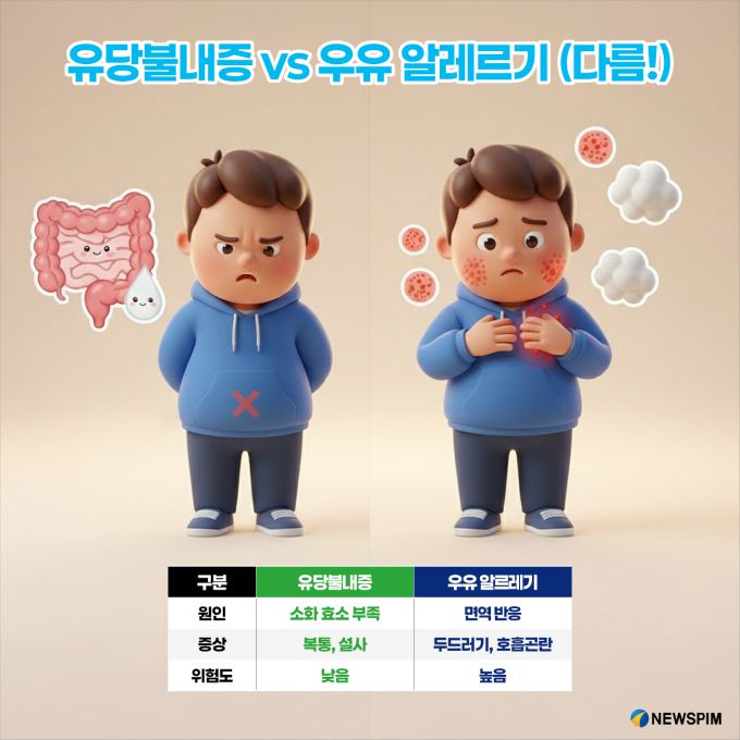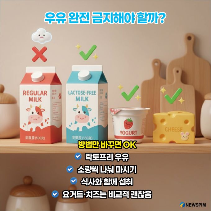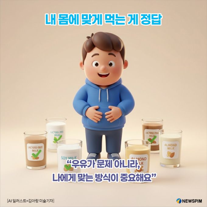 [AI 카드뉴스] 우유 마시면 배 아픈 이유? 유당불내증, 알고 먹자!