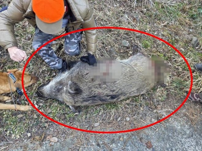 19일 인천시 옹진군에 따르면 지난 17일 오후 1시 50분쯤 서해 북단 소청도의 한 해삼 양식장 인근에서 ‘유해야생동물 피해방지단’ 소속 엽사가 멧돼지를 발견해 사살했다.