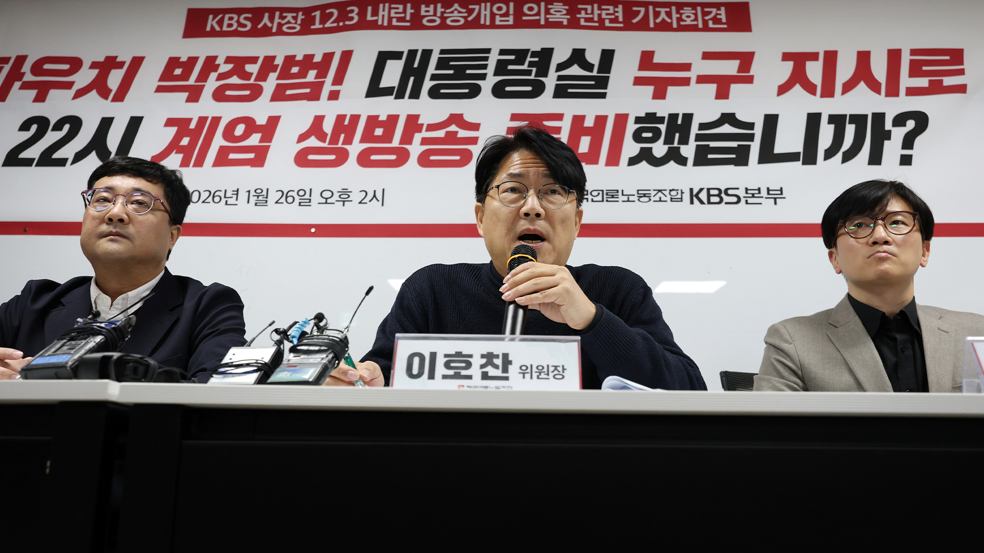 언론노조 KBS 본부는 어제(26일) 오후 기자회견을 열고, 박장범 사장이 당시 내정자 신분으로 방송 편성과 관련한 어떠한 권한을 가지지 않았는데도, 권력자 누군가의 연락을 받아 보도국장에게 담화방송 준비를 전달했을 거로 추정된다고 밝혔습니다.