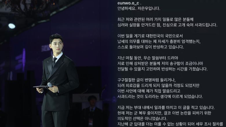 차은우는 어제(26일) 자신의 SNS에 글을 올려 "많은 분들께 심려와 실망을 안겨드린 점, 진심으로 고개 숙여 사과한다"고 밝혔습니다.