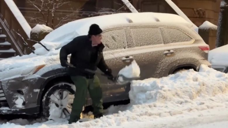 시민들은 집 앞과 도로에 나와 두꺼운 눈 담요로 덮인 도로와 차량의 눈을 치웠습니다.