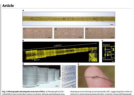 다층 나선형 구조를 통한 섬유 집적 회로(Fibre integrated circuits by a multilayered spiral architecture) 논문에 삽입된 광섬유 칩 이미지 일부
