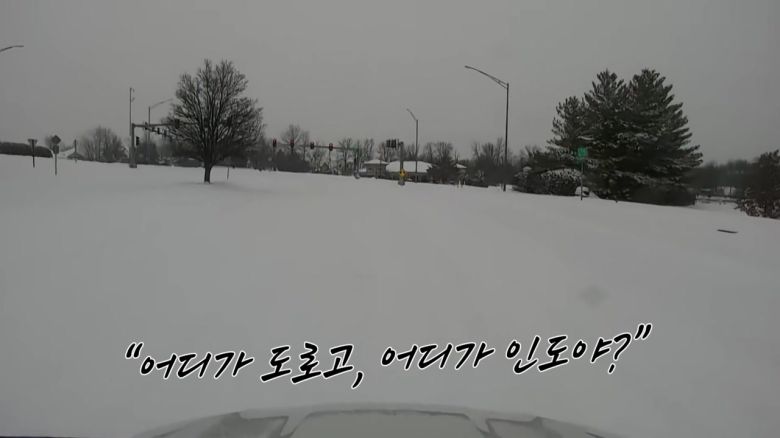 미처 눈을 치우지 못한 곳은 보시는 것처럼 도로인지 인도인지도 모른 채 위험하게 운전할 수밖에 없었습니다.