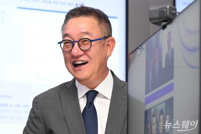 현신균 LG CNS 대표가 서울 강서구 LG사이언스파크에서 열린 AI 디자인 확산 전략 행사에 마련된 GEN AI 스튜디오에서 생성형AI 기반 캐리커처 카메라를 체험하며 미소를 짓고 있다. 사진=강민석 기자 kms@newsway.co.kr |