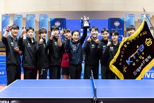 한국거래소는 단체전 정상에 오르면서 남자 단식(오준성)과 혼합복식(임종훈-신유빈) 우승을 포함해 대회 3관왕에 올랐다.