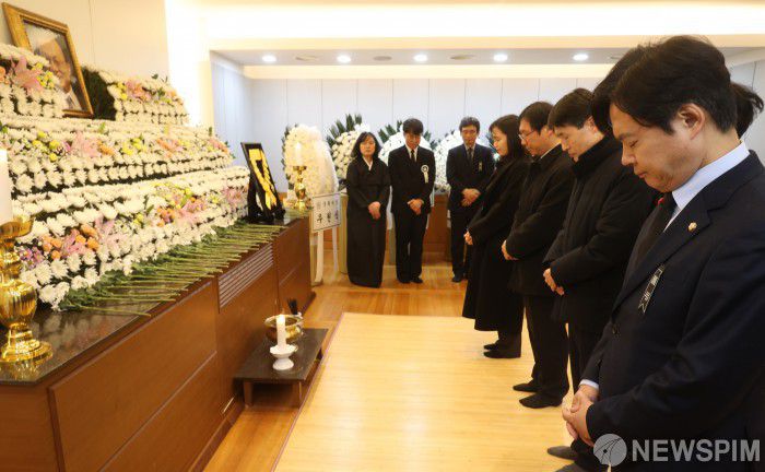 [서울=뉴스핌] 사진공동취재단 = 김현정 더불어민주당 의원(오른쪽 첫번째)이 27일 오후 서울 종로구 서울대학교병원 장례식장에 마련된 고(故) 이해찬 민주평화통일자문회의 수석부의장의 빈소를 찾아 조문하고 있다. 2026.01.27 photo@newspim.com |