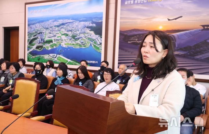 [서울=뉴시스] 조성봉 기자 = 김유진 12.29 무안공항 제주항공 여객기 참사 유가족협의회 대표가 27일 오후 서울 여의도 국회에서 열린 12.29여객기참사진상규명을위한국정조사특별위원회 전체회의에서 발언을 하고 있다. 2026.01.27. suncho21@newsis.com |