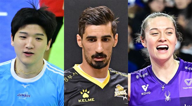 대한항공 정지석, KB손해보험 야쿱, 흥국생명 레베카. 한국배구연맹 제공