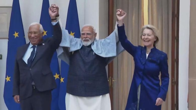 현지 시간 27일 나렌드라 모디 총리는 수도 뉴델리에서 우르줄라 폰데어라이엔 EU 집행위원장과 정상회담을 앞두고 세계 경제의 4분의 1을 차지하는 역사적 무역협정을 최종 타결했다고 밝혔습니다.