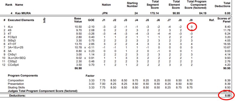 이에 대해 한 패널은 미우라가 첫 번째 넘어졌던 쿼드러플 루프 때 GOE 감점을 아예 주지 않아 눈길을 끌기도 했다. "일본 심판인가"라는 비판도 나오는 상황이다.