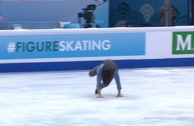 특히 쿼드러플 토루프 때는 두 손을 모두 빙판에 짚으면서 한 바퀴를 도는 큰 실수를 저질렀다.