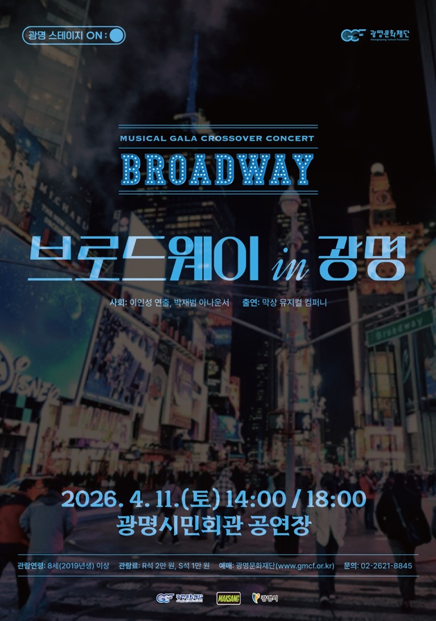 [서울경제TV 경인=김수빈 기자] 광명문화재단은 오는 4월 11일 광명시민회관에서 크로스오버 콘서트 ‘브로드웨이 IN 광명’을 개최한다고 밝혔다.