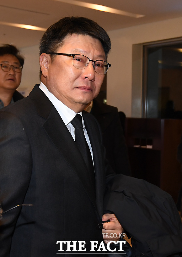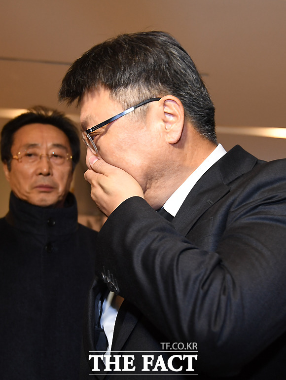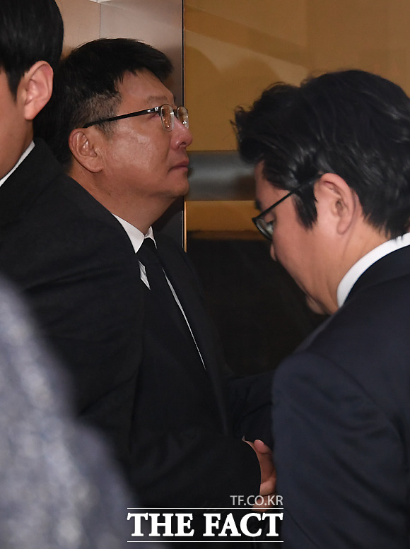 [더팩트ㅣ이새롬 기자] 지난 7일 검찰 수사를 받다 스스로 목숨을 끊은 이재수 전 기무사령관의 장례가 5일장으로 치러지는 가운데, 장례 4일째인 10일 오후 박지만 EG회장이 빈소가 마련된 삼성서울병원 장례식장에 들어서며 울먹이고 있다.