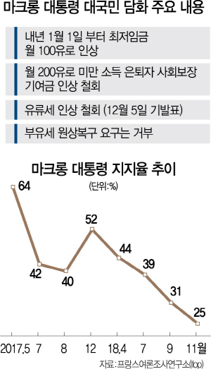 마크롱 대통령이 내놓은 조치를 실행하는 데 드는 비용도 문제다. AFP통신은 “80억~100억유로(약 10조~12조원)에 달하는 비용이 들 것으로 전망된다”며 “이는 경제성장을 더욱 더디게 하고 지금도 높은 실업률을 더욱 끌어올릴 것”이라고 지적했다. /김민정기자 jeong@sedaily.com