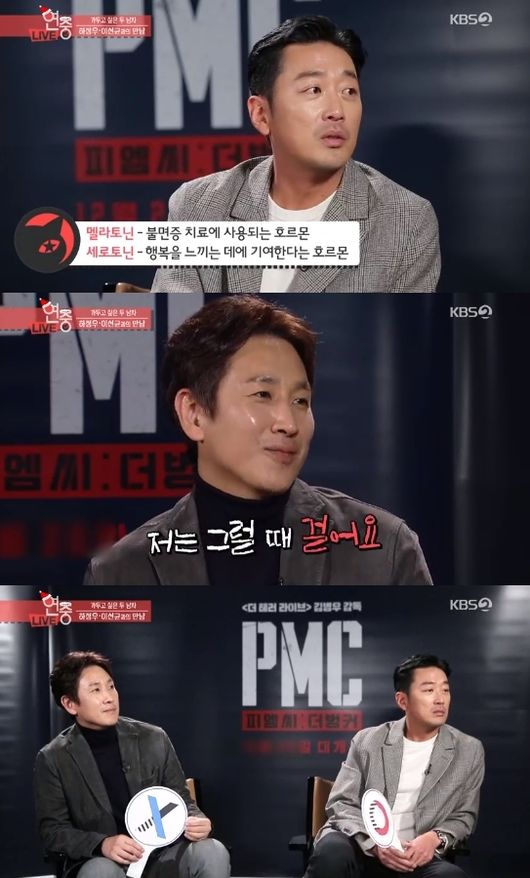 영화 'PMC:더 벙커'의 주역 하정우 이선균의 인터뷰도 담겼다. 두 사람들의 조합과 관련, 하정우는 "제작진이 이선균을 몇날 며칠 찾아갔다. 공양미 300석에 수락을 했다더라"고 너스레를 떨었다.