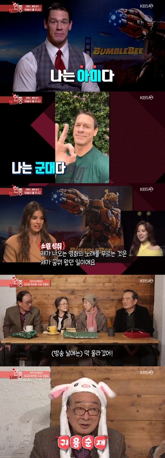 영화 '범블비' 주역들의 인터뷰도 담겼다. 헤일리는 트랜스포머 시리즈의 첫 여성 주인공이자 직접 영화 OST를 불러 화제를 물었다. 헤일리는 "내 버킷리스트에 있던 일이었다. 내가 나오는 영화의 노래를 불렀다. 정말 영광스럽다. 말해 뭐 하겠나"고 밝혔다.