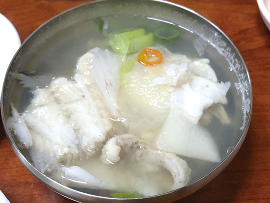 서호식당 안에 있는 오래된 복 맛집이다. 통영 사람들, 특히 시장 상인이나 뱃사람들이 즐겨 찾는 집인데 ‘알쓸신잡’ 통영 편에 소개된 뒤로 여행자들의 발길이 부쩍 늘어났다. 이 집은 계절에 맞춘 제철 국물 음식으로 현지인들의 사랑을 받아왔다. 시장이나 어항에서 일하는 사람들의 고달픈 삶에 위로가 되기에 충분한 메뉴들이다. 새벽부터 움직이니 몸이 차갑고 바쁘게 돌아가는 현장이라 식사를 느긋하게 할 새도 없다. 건강식을 챙긴다는 것은 포기해야 하는 일상이기도 하다. 그래서 봄에는 ‘도다리쑥국’(1만5000원), 여름 가을엔 생선매운탕(1만3000원), 겨울엔 메기탕(1만3000원)을 만들어 바쁜 상인, 어부들의 속을 뜨끈하게 위로해 주는 것이다. 그러나 이 집의 최고 메뉴는 역시 복이다. 담백하다 못해 심심한 느낌까지 드는 복국(1만2000원), 복매운탕(1만4000원)은 영양과 맛을 고려한, 그리고 가격도 적당한 시장통 고급 음식들이다.
